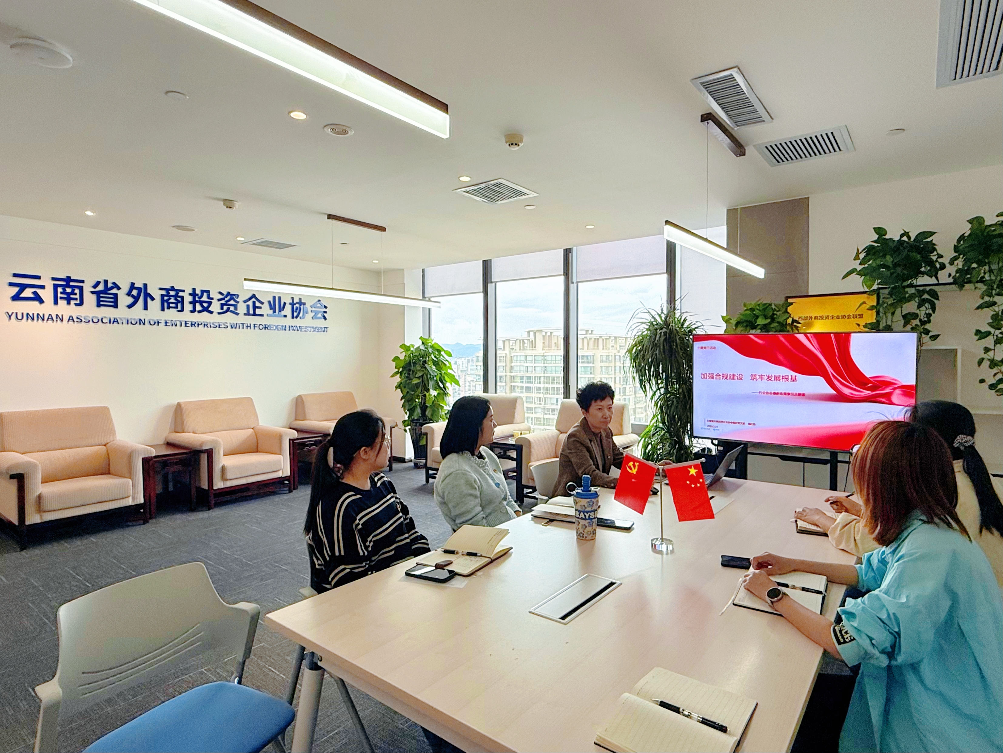 2026年3月31日,云南省外商投资企业协会临时党支部以“加强合规建设,筑牢发展根基---行业协会最新政策索引及解读”为主题,在协会办公室开展主题党日活动。支部党员4名,实到党员4名,另有3名非党员同事一起参加学习。